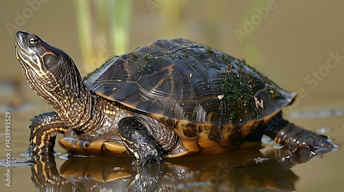 © KALEYA, Obraz premium Dark Brown Turtle in Shallow Water