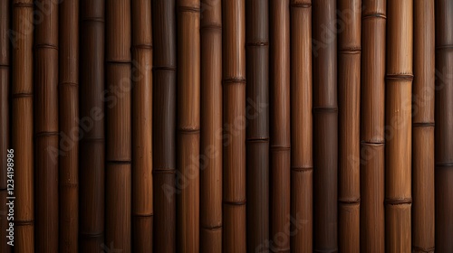 © Arthur Constantine, Fototapeta premium Dark Brown Vertical Bamboo Wall Texture Background