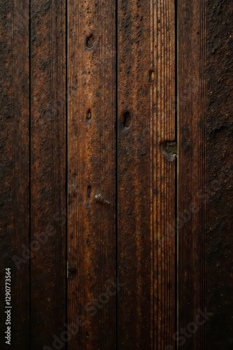 Naklejka premium Dark brown wood grain, heavily distressed, aged texture, surface, aged, panel