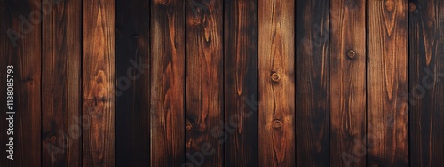 © BerkahStock, Naklejka premium Dark brown wood plank background texture.