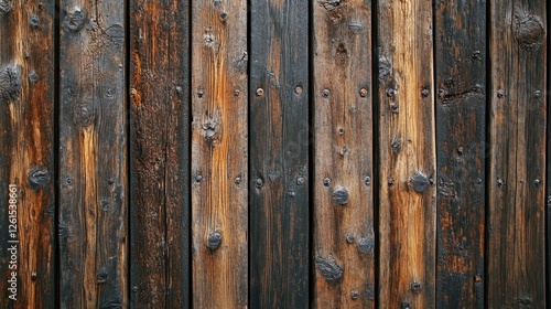 Naklejka premium Dark brown wood planks, vertically aligned, showing age and texture. Perfect...