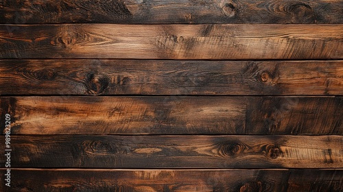 © Thanthara, Naklejka premium Dark brown wooden plank background, wallpaper. Old grunge dark textured wooden background, The surface of the old brown wood texture, top view brown pine wood paneling.
