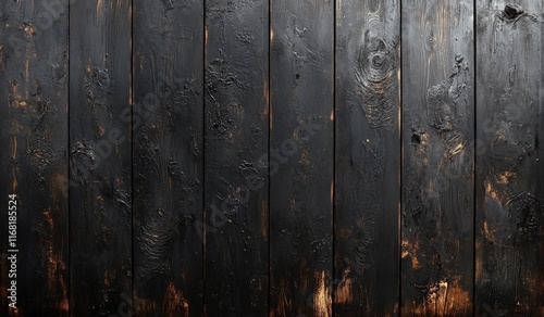 Fototapeta premium Dark brown wooden planks with visible wood grain and charred edges