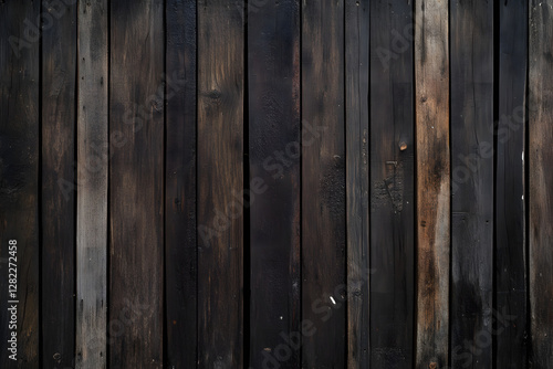 Fototapeta premium Dark brown wooden wall background, dark wood texture paneling surface for...