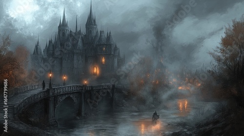 © angga, Obraz premium Dark castle at night