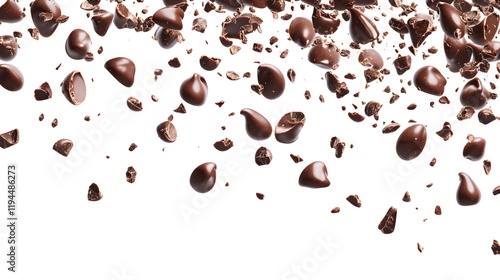 © sungedi, Obraz premium Dark Chocolate Chips Falling Isolated White Background