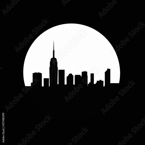 Naklejka premium Dark cityscape background black buildings with smoke 3d rendering illustration skyline silhouette