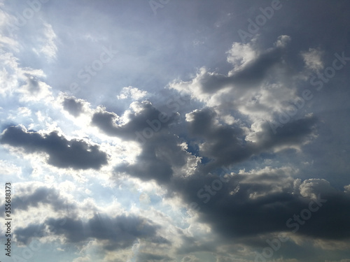 Obraz premium Dark clouds and sunlight behind the clouds. Rainy season. Climate, air,...