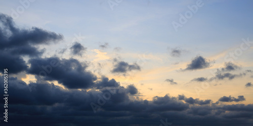 © zilvergolf, Obraz premium Dark clouds before rain on blue sky background