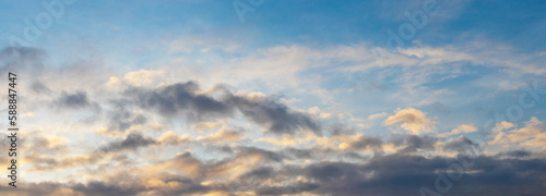 © Volodymyr, Naklejka premium Dark clouds in the blue sky during sunset