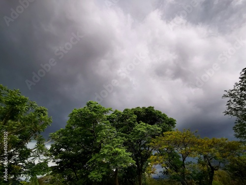 Obraz premium dark clouds over a tree canopy