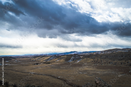 Fototapeta premium Dark clouds over Colorado mountain valley.