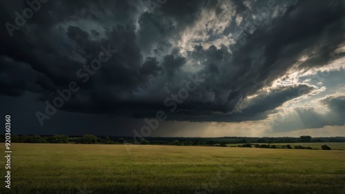 © Saad, Obraz premium Dark clouds over moody field landscape