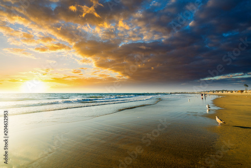 © Gabriele Maltinti, Obraz premium Dark clouds over Newport Beach at sunset
