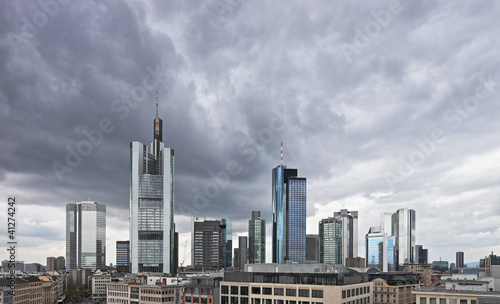 Obraz premium Dark clouds over the financial centre in Frankfurt, Germany
