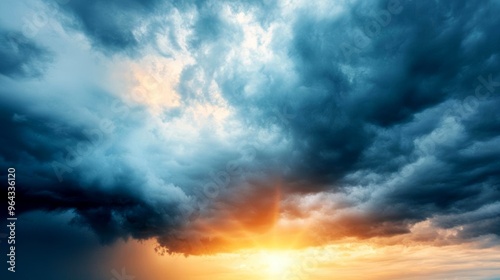 Obraz premium Dark clouds with the sun breaking through, stormy weather, dramatic lighting
