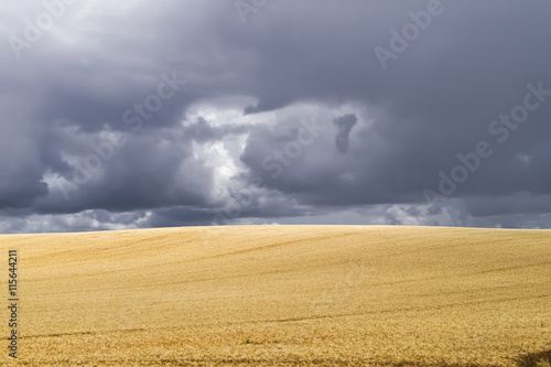 © southmind, Fototapeta premium Dark cloudy sky against a bright wheat field