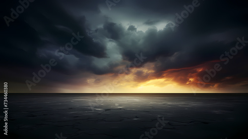 Fototapeta premium Dark concrete floor background infinite horizon sky panoramic scene