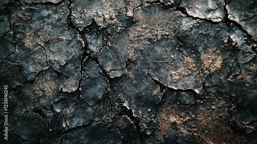 © Kitta Studio, Fototapeta premium Dark Cracked Surface with Textured Patterns and Earthy Tones