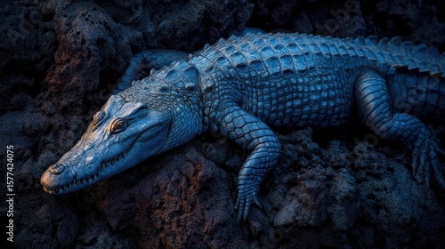 © lipur, Obraz premium Dark crocodile on rocks