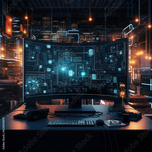 © rochmad, Fototapeta premium Dark cyber punk technology desktop illustration
