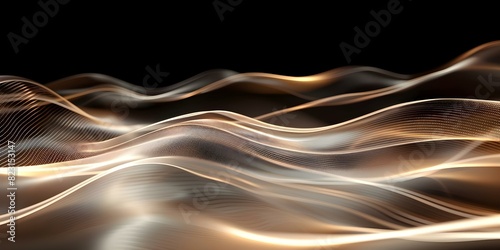 © Anastasiia, Fototapeta premium Dark digital background with curved wave pattern network theme 3D rendering. Concept Technology, Digital Art, Networking, 3D Rendering, Dark Background