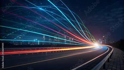 Obraz premium Dark Digital Background with Glowing Data Streams and Dynamic Lines. Perfect for: Tech Conferences, Cyber Security Awareness Month, IT Networking Events