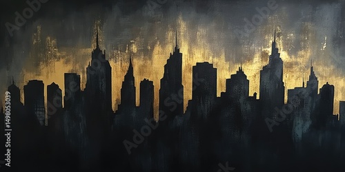 Obraz premium Dark, dramatic city skyline against a fiery, textured backdrop