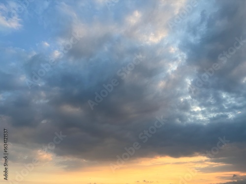 Fototapeta premium Dark, dramatic sky filled with ominous grey storm clouds. Moody and...