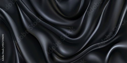 © Hadiyah, Obraz premium Dark Draped Black Silk Fabric Texture