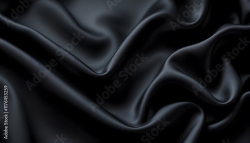 © Aiwanzd, Obraz premium Dark Elegance: Abstract Close-Up of Black Silk Fabric
