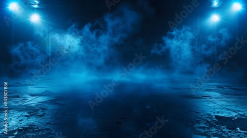 Fototapeta premium Dark empty street scene neon lights dark blue background