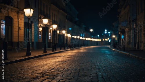 © LIFE LINE, Fototapeta premium Dark empty street with spotlights