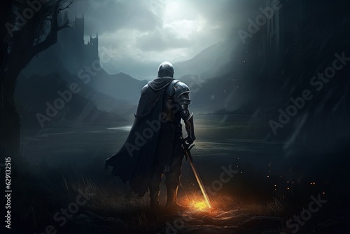 © nsit0108, Fototapeta premium Dark fantasy knight view. Generate Ai