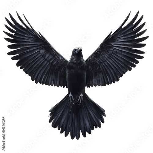 © M.IVA, Fototapeta premium Dark feathered bird in flight with wide wings