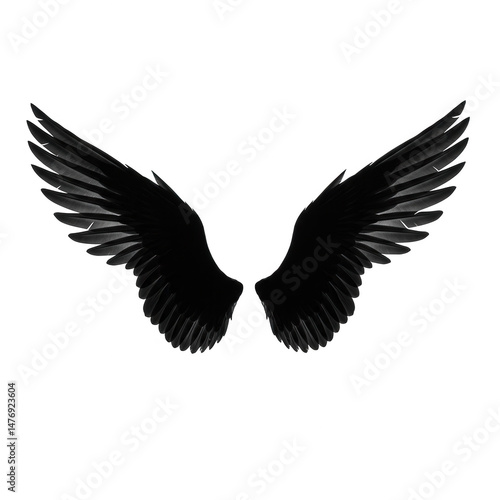 © Sejjil, Obraz premium Dark feathered wings spread isolated on transparent background