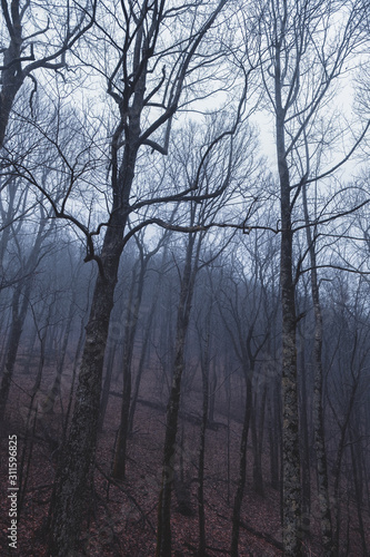© KatherineGregorio, Fototapeta premium dark foggy moody forest