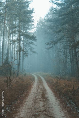 Obraz premium Dark forest covered with fog