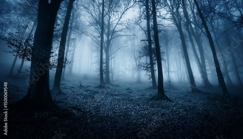 © Fbio, Fototapeta premium dark forest horror background with fog