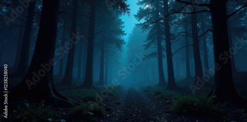 © สิริวุฒิ นาคโคตร, Obraz premium Dark forest landscape with tilted trees and bones, scary, forest, night