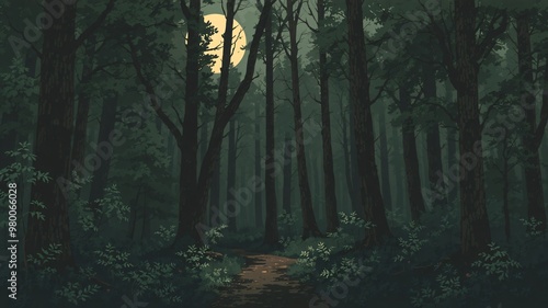 © Hirzan, Obraz premium dark forest minimalist illustration eerie scary background