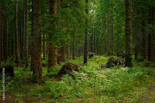 Obraz premium Dark forest near in Oregon in Pacific Northwest.