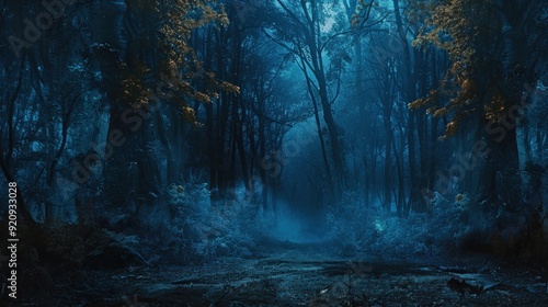© Shodaime, Fototapeta premium Dark forest panorama fantasy landscape