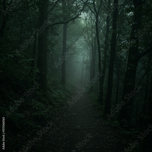 © Arcadia, Fototapeta premium Dark Forest Path Shrouded in Fog