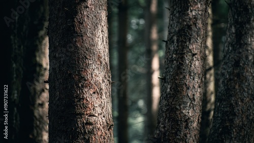 Obraz premium Dark Forest with Tall Tree Trunks