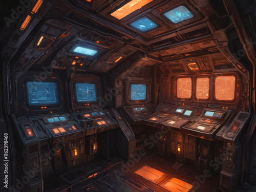 © Constantine, Obraz premium Dark Futuristic Control Room