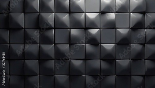 Fototapeta premium Dark Geometric Padded Tiles with Glossy Highlights. Modern 3D Cushion-Like Square Grid for Interior Decor.
