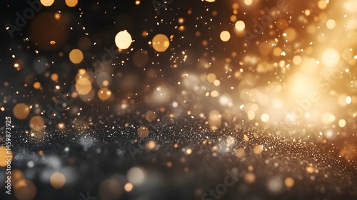 © Rasel, Obraz premium Dark Glittering Background Golden Sparkle Bokeh Texture
