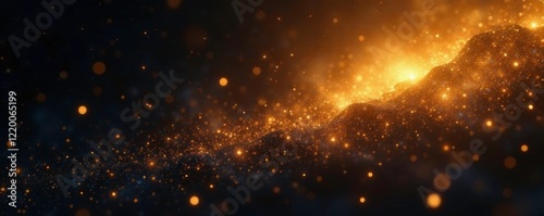 Fototapeta premium Dark gold background with scattered shimmering stars, cosmos, dark, gold