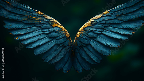© suparti, Fototapeta premium Dark, Golden Angel Wings, Mystical Display